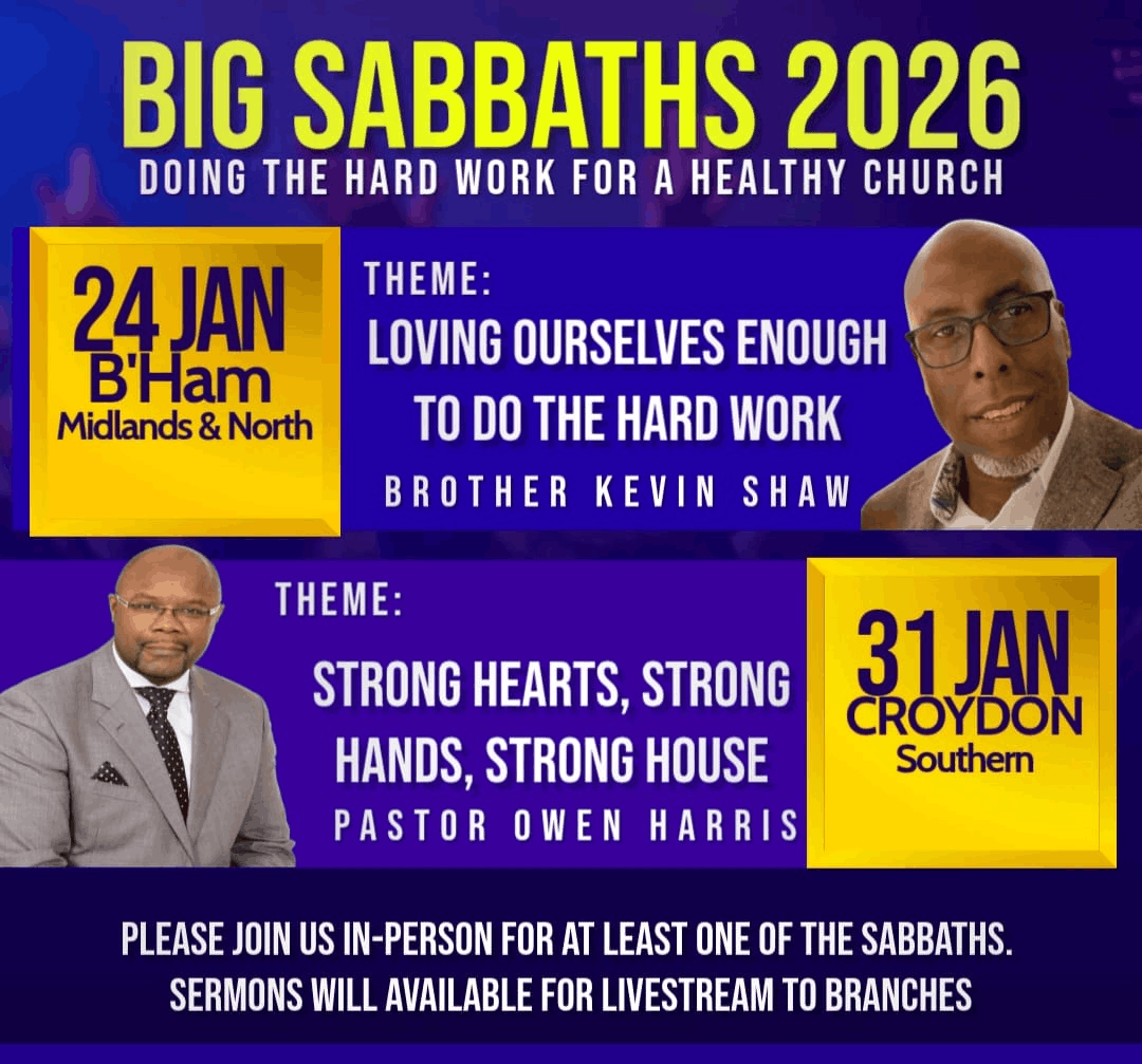 Please join us in-person for one of the Sabbaths. Sermons will be available for livestream to branches.